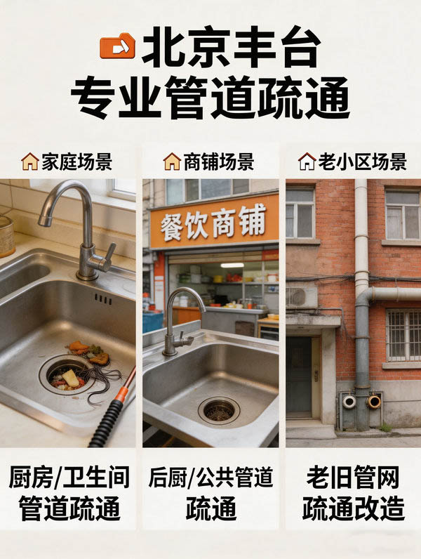 管道堵塞不是单一问题,家庭住宅、沿街商铺、丰台老旧小区的管道结构、堵塞原因完全不同,通用疏通方法往往治标不治本。本文针对丰台区三大主流场景,定制专项疏通方案,精准解决痛点,彻底告别反复堵塞,适配丰台各类建筑管道特点。